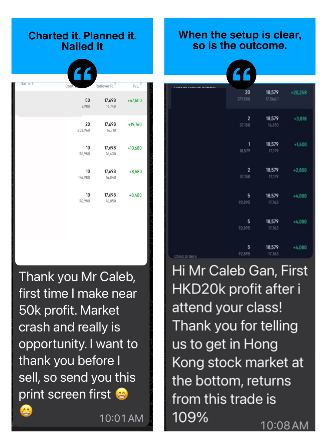 多年来他不断优化交易策略,协助学员精准判断进出场、掌握机会。也曾多次受邀上电台节目(如93.8Live、Capital 95.8FM)分享市场观点。